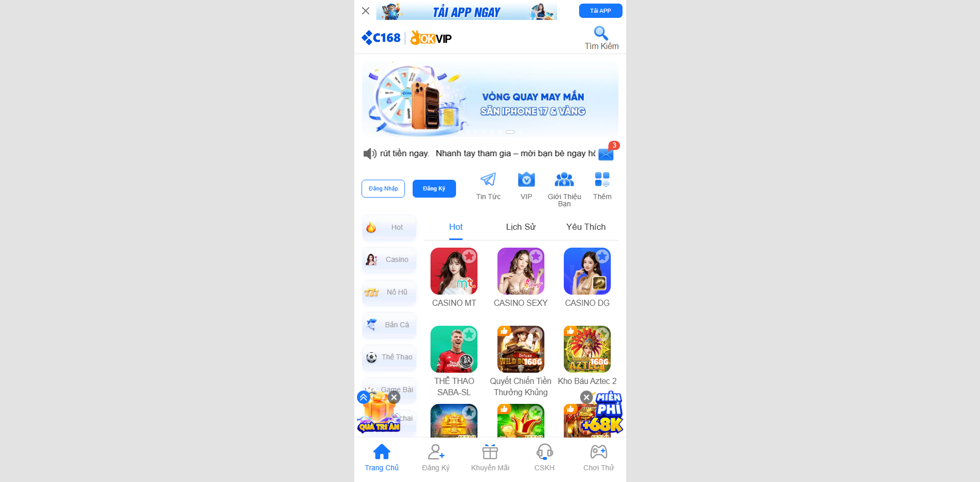Với nền tảng công nghệ hiện đại, giao diện thân thiện và hàng loạt ưu đãi hấp dẫn 🎁, C168B10 đang là điểm đến được đông đảo người chơi Việt Nam tin tưởng lựa chọn.
